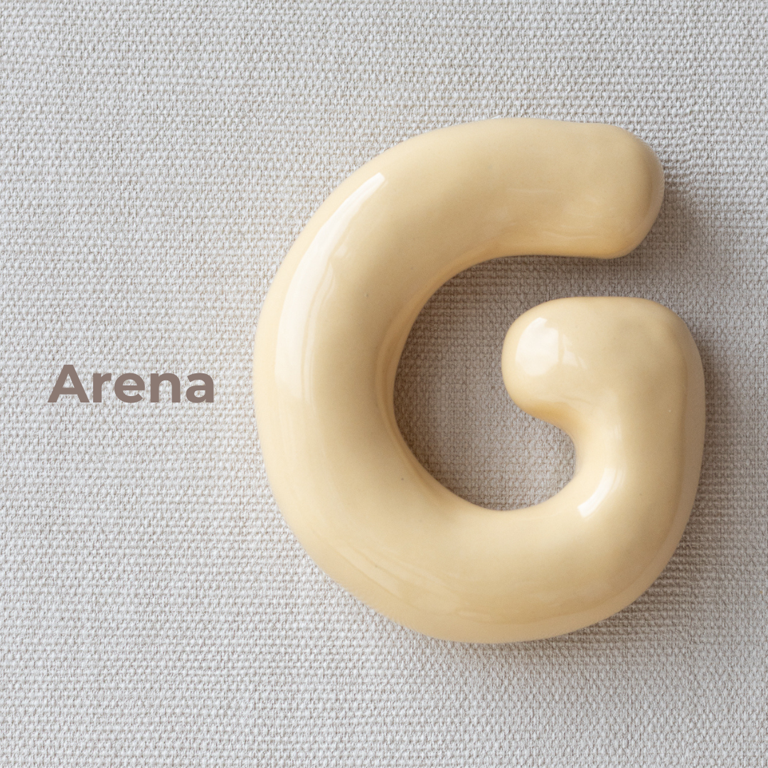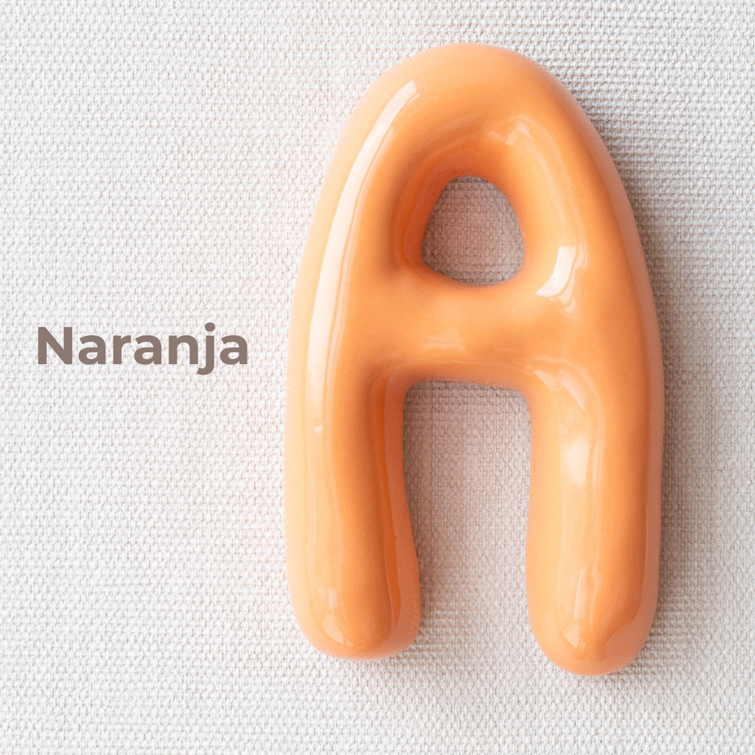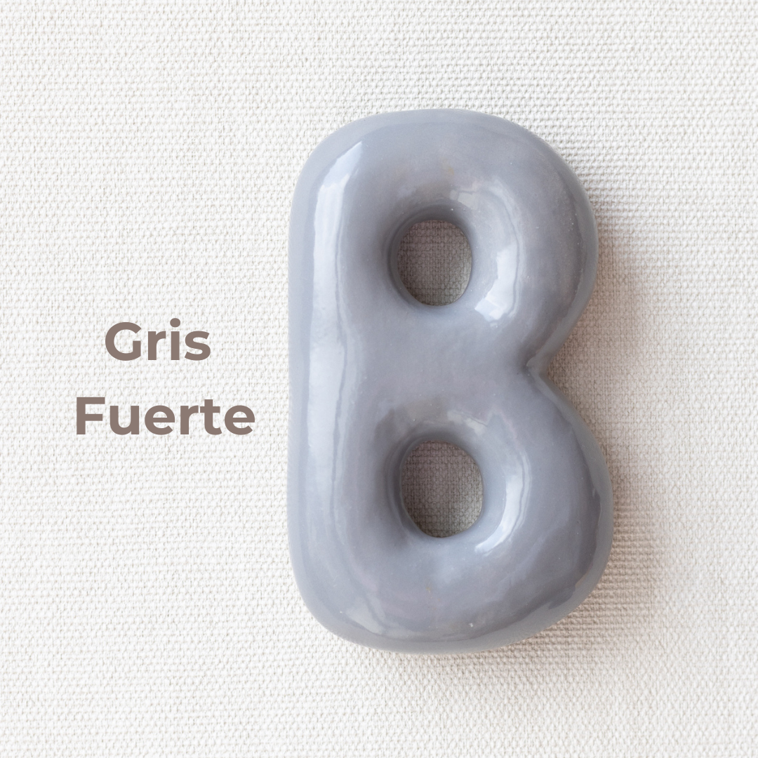 Letras de cerámica esmaltadas a mano en acabado brillante. Cada una está diseñada para ser colgada en la pared, tiene una perforación en la parte posterior para facilitar su instalación. Se venden por separado. Disponibles en varios colores.