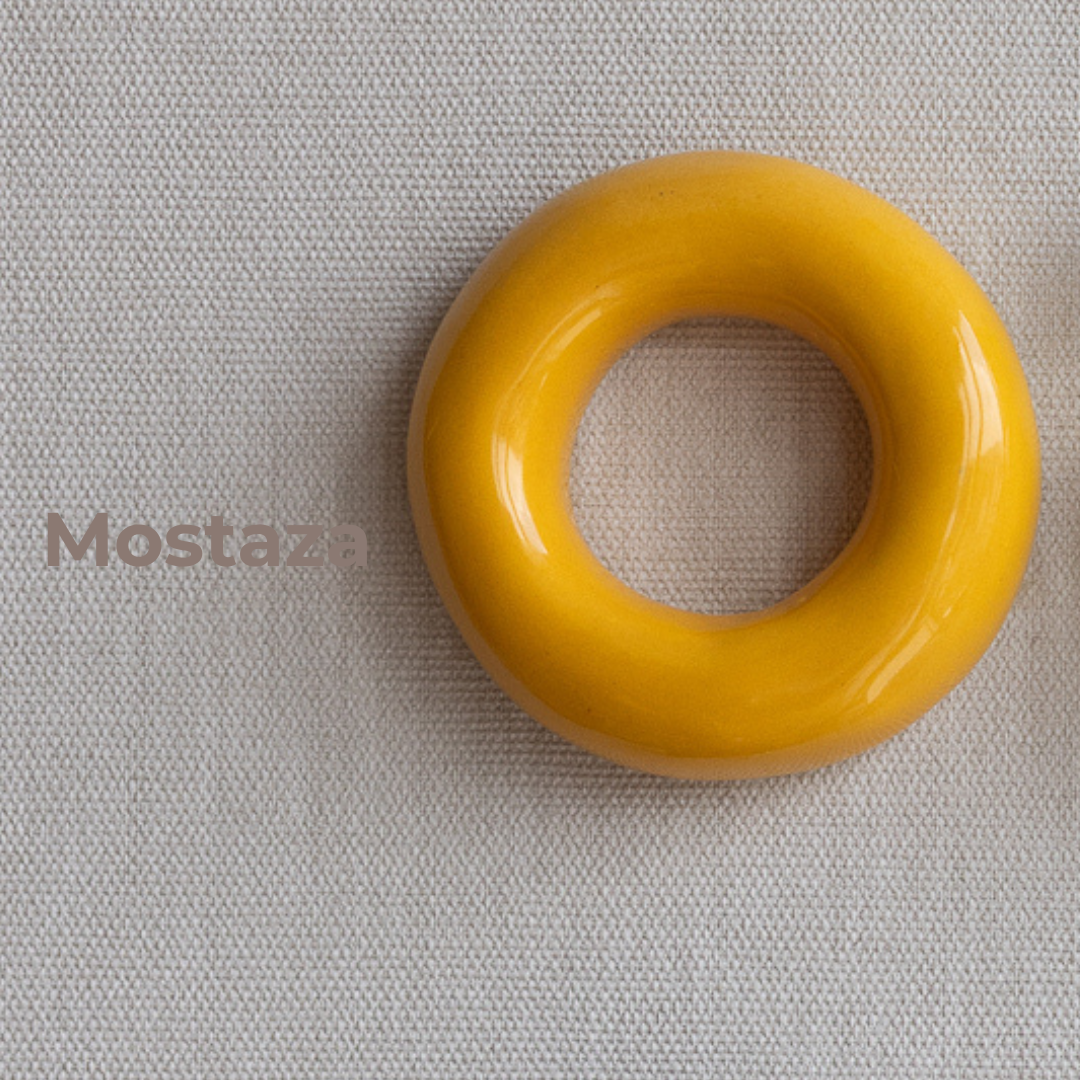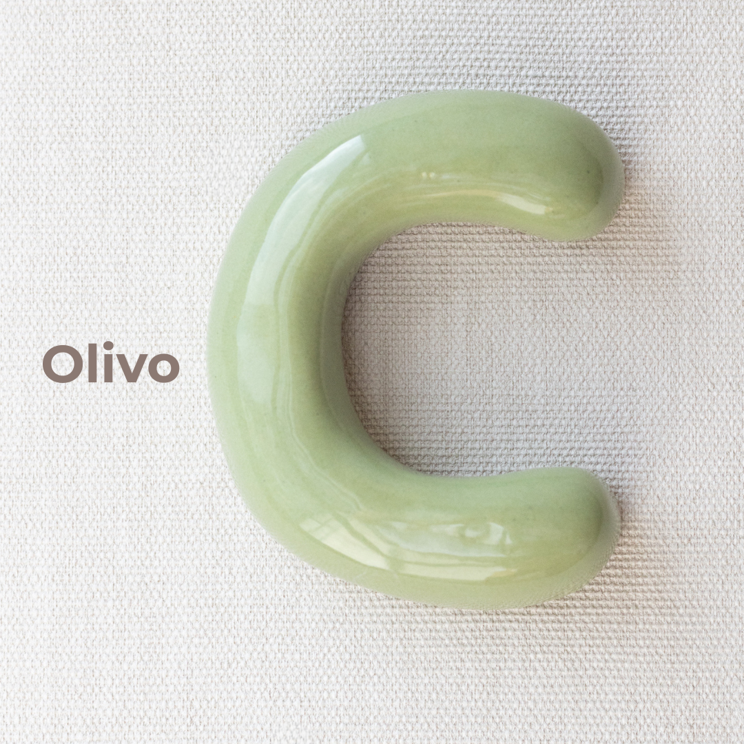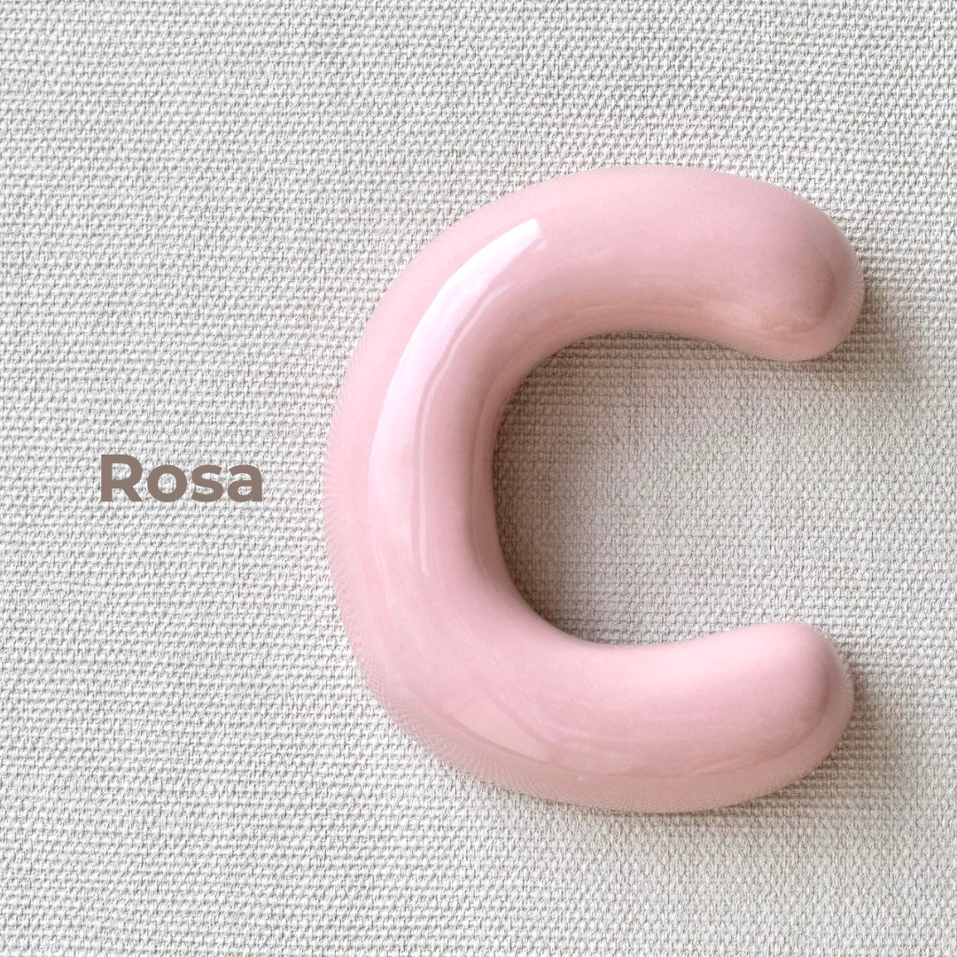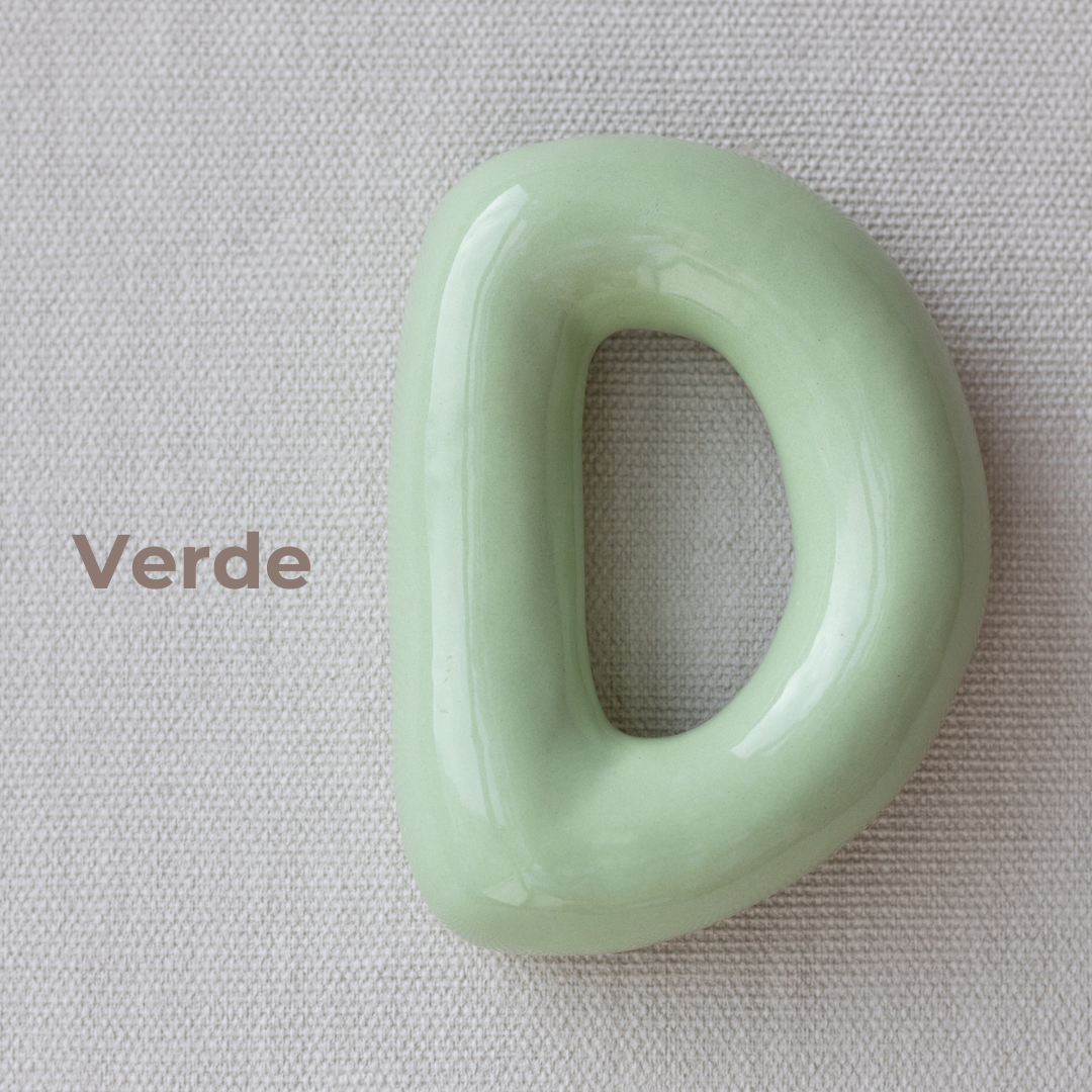 Letras de cerámica esmaltadas a mano en acabado brillante. Cada una está diseñada para ser colgada en la pared, tiene una perforación en la parte posterior para facilitar su instalación. Se venden por separado. Disponibles en varios colores.